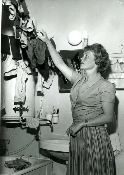Elektriske vaskemaskiner kom på markedet i Norge på 1920-tallet, men var ikke vanlige før 1950. I 1973 hadde 72 % av husholdene i Norge vaskemaskin. Et slitsomt arbeid med bryggerpanne og vaskebrett er i etterkrigstiden erstattet med helautomatiske maskiner og tørketromler.