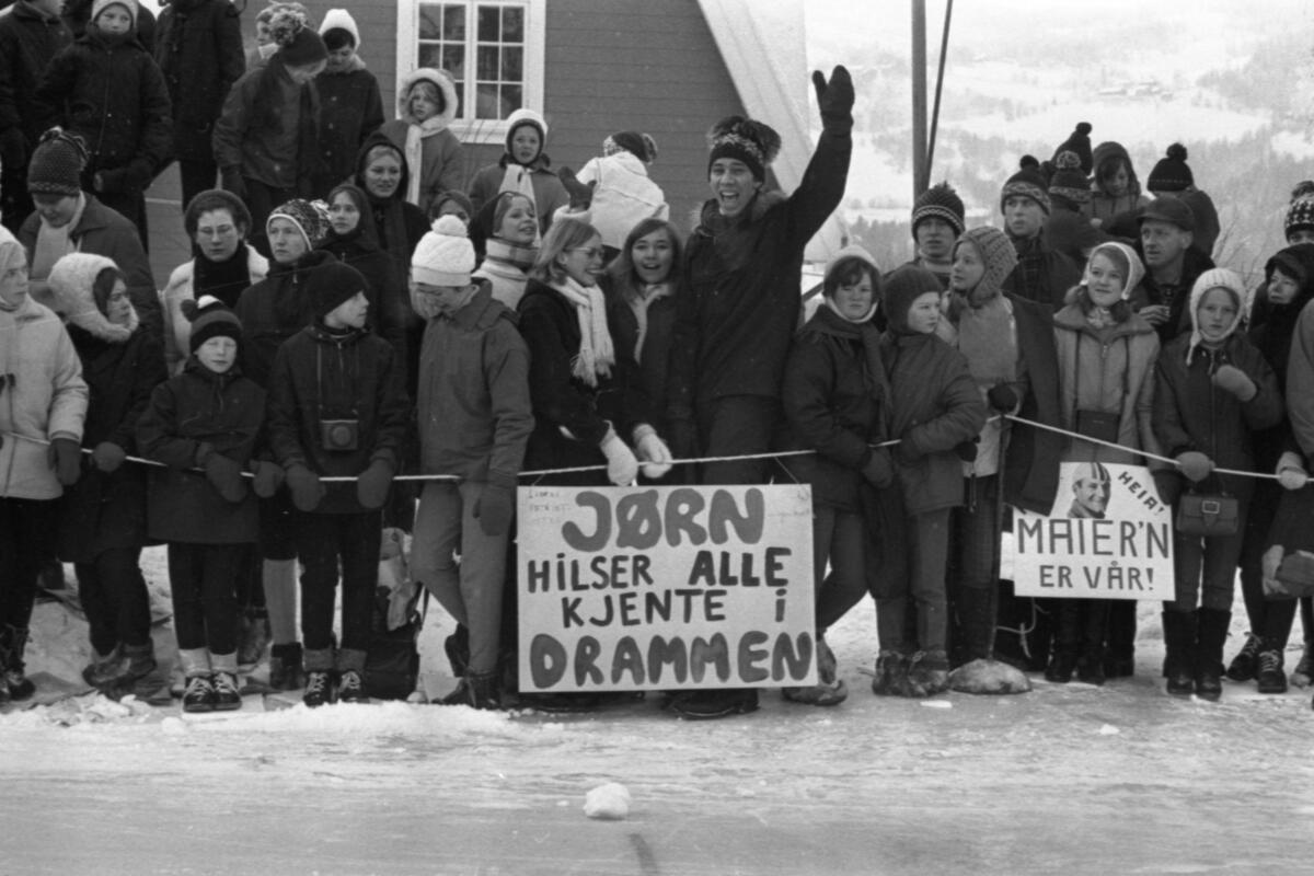 STILSTUDIE: Dag Fornæss under VM på Bislett i 1970. ‘Folkehav’ er eneste riktige benevnelse på den grå veggen der bak. Fotograf ukjent/Dagbladet | Norsk Folkemuseum