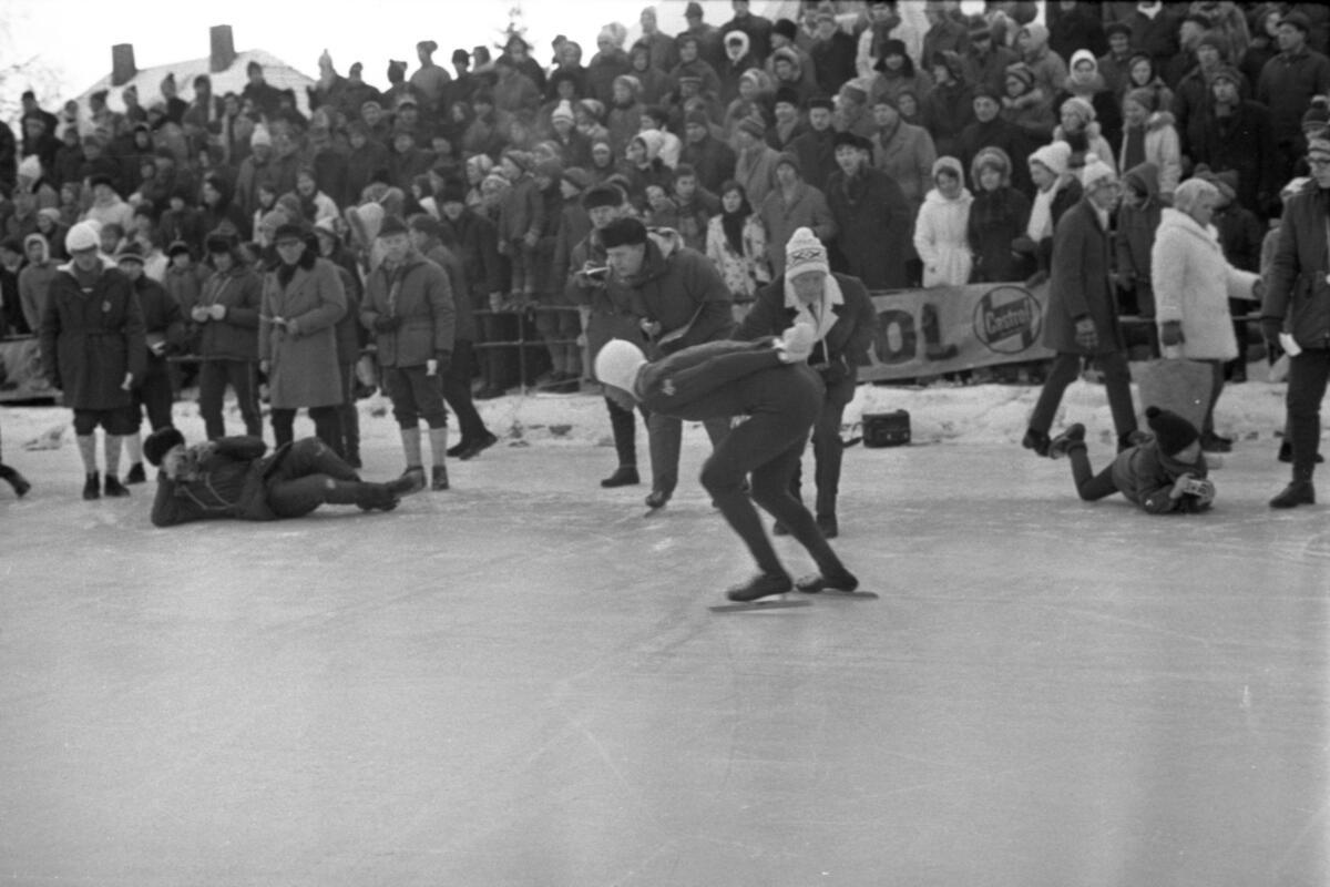 Men i Norge stod de som sild i tønne med notisblokka og krotet ned rundetider, memorerte rekorder og nerdet fullstendig på tall. Og utøverne hygget seg så ofte de kunne på karslig vis: vennskapelige knyttneveslag og nakkegrep mellom russere, nederlendere, nordmenn og svensker, brytekamper eller rett og slett en god gammeldags arm rundt hverandre på benken. Fotografen har sågar greid å få to skøyteløpere til sengs i ei dobbeltseng, med helsetrøye, topplue og Dagbladet på deling. En av hovedsakene på forsida var: «Oslodame skandalisert av indiskret sakfører». Mer tabloid blir det nesten ikke, og det til tross for at Dagbladet den gang kom ut i broadsheet.