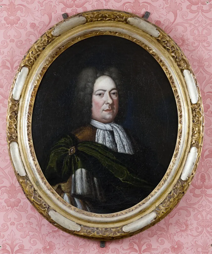 Trelasthandleren James Collett d.e. (1655–1727). Samtidig portrett av ukjent kunstner. Collett kom til Christiania fra England for første gang i 1677 (bosatt fra 1683) og arbeidet seg opp til å bli byens suverent største eksportør av trelast og en av landets rikeste menn. Tilhører Drammens Museum