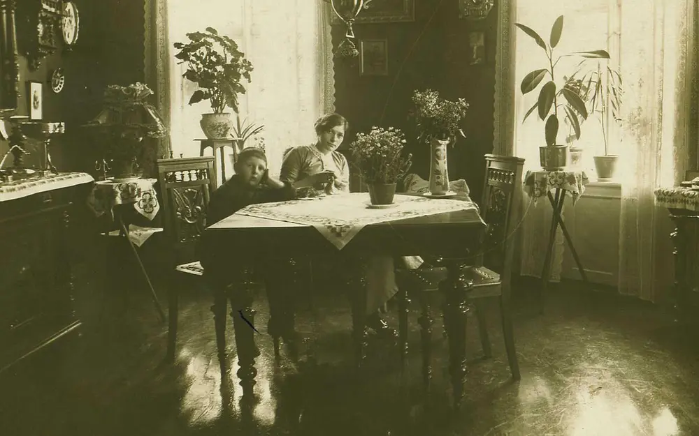 Fra et jødisk hjem i Kristiania, 1916. Fotografiet viser et tidstypisk interiør som ikke skiller seg nevneverdig fra andre norske hjem i samme periode. Privat foto.
