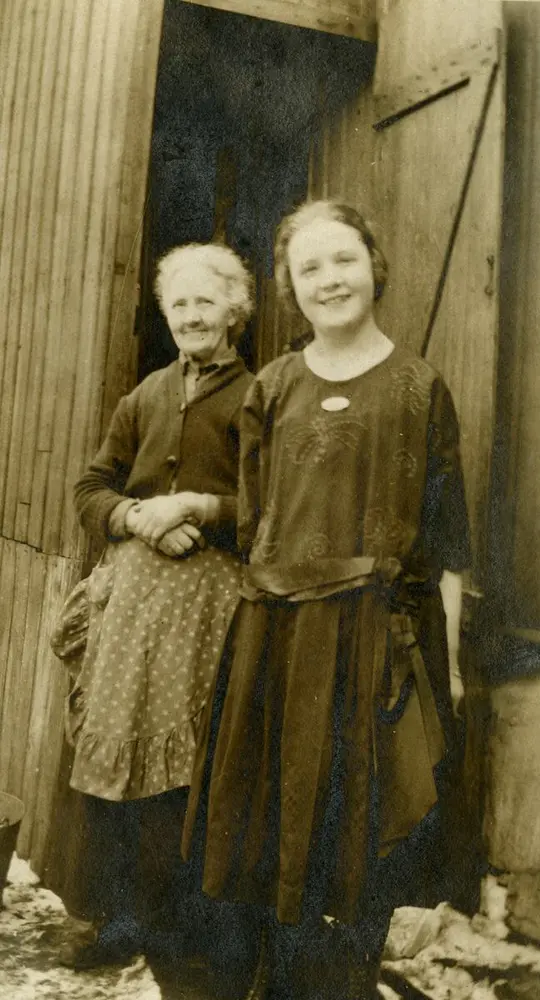 Augusta var født i Hede socken i Bohuslän i 1861. Hun ble gift med Marius Andresen og bodde på Enerhaugen. Her sammen med datteren Rakel. Albert Scheinpflug | Norsk Folkemuseum