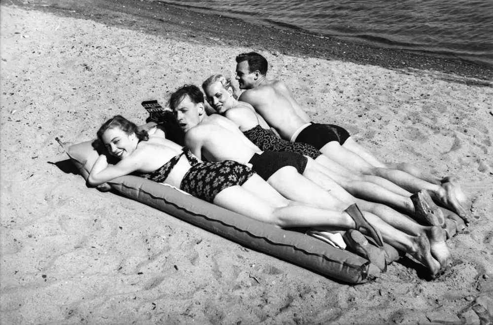 Badeliv i 1939. Luftmadrassen var en nyhet på 1930-tallet. A. B. Wilse | Norsk Folkemuseum