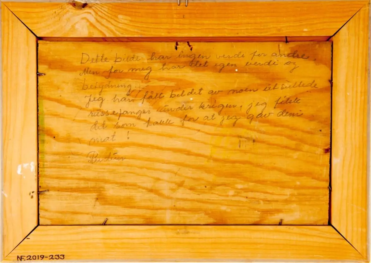 "This picture has no value to others. But to me it has its own value and importance. I got the picture from some starving Russian prisoners during the war, and I got it as a thank you for giving them food! "