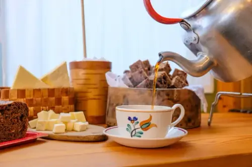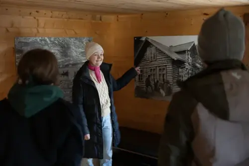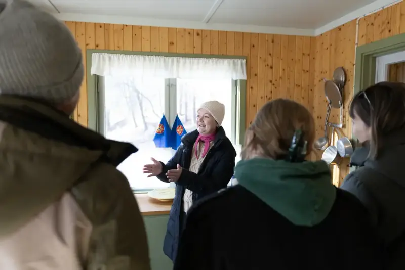 - Welcome inside: In the museum’s houses from Finnmark, we will serve tastings of kaffijuusto/kaffeost (coffee cheese), teekakko/kvensk tekake (Kven tea cake), and lingonberry bread.