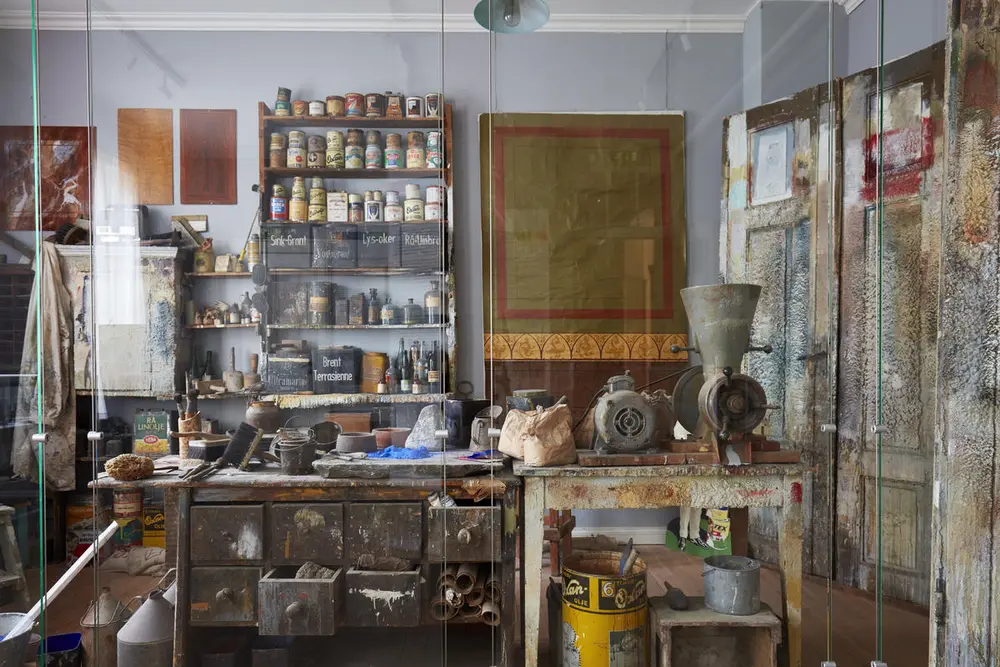 Malerverksted i utstillingen «Maler'n» Haakon Michael Harris | Norsk Folkemuseum