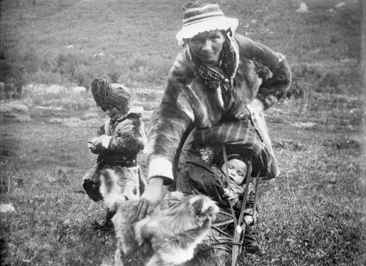 Sámi woman with two children, ca. 1900. Borgensamlingen/Norsk Folkemuseum