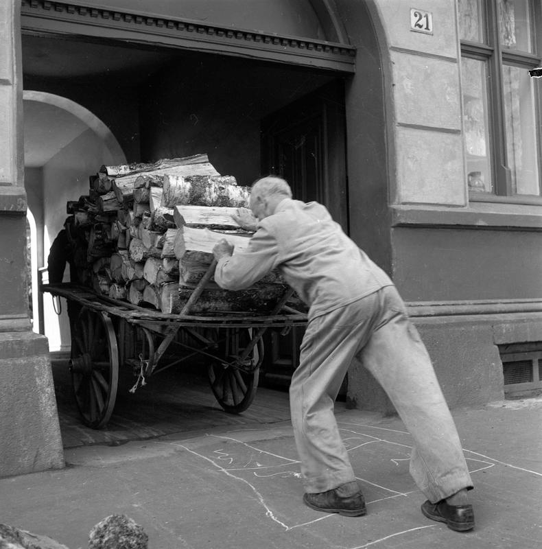 Vedkjøring i Markveien i Oslo, 1956 Dagbladet/Norsk Folkemuseum