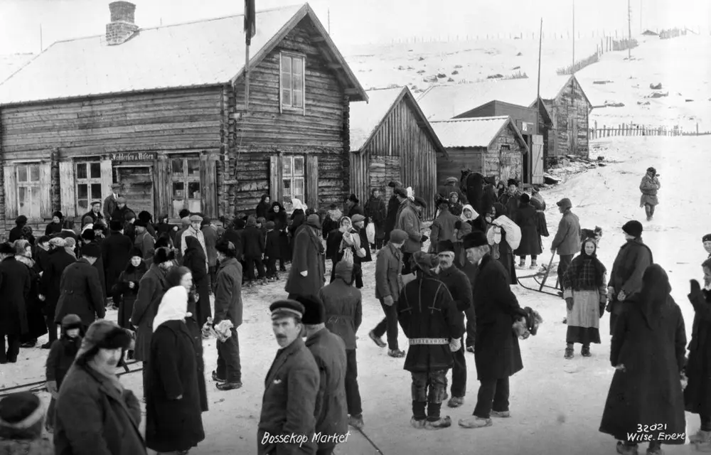 Bossekopmarkedet i Alta, 1928. Dette var lenge ett av de viktigste kulturelle møtested på Nordkalotten A. B. Wilse | Norsk Folkemuseum