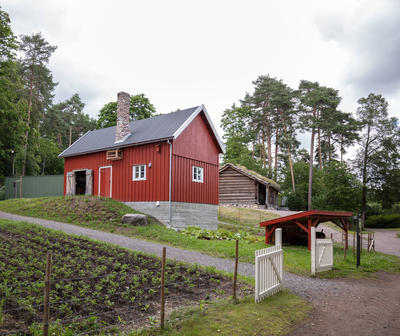 Forbilde til smia på Finnmarksplassen er smia til Albert Strømstad, som fremdeles står i Smørfjord. Det er brukt restmaterialer fra byggearbeidene på de andre husene, noe som var vanlig på 1950-tallet.