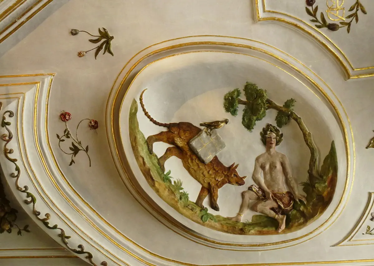 Kungssalen på Skoklosters slott i Sverige. Gipstaket som forestiller de fire verdensdeler er utført av Hans Zauch i 1663-1664. Kilde: Wikimedia. Holger Ellgaard | CC BY-SA 3.0 - 2/2