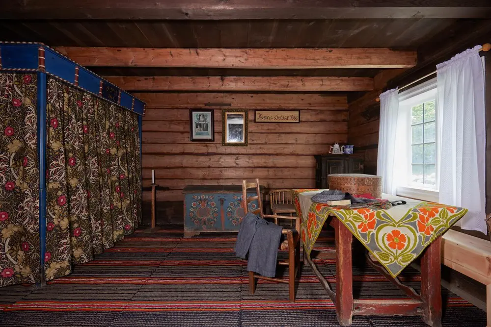Som skikken var har huset kun én ovn til oppvarming, nemlig en bileggerovn i stua. Var det trangt om sengeplasser, kunne både barn og tjenestefolk sove på loftet.