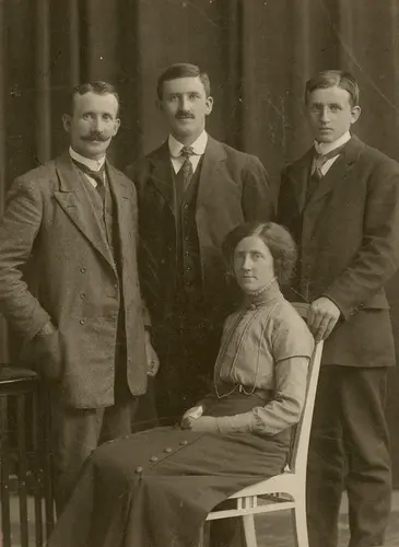 De var sju søsken i den siste flokken som vokste opp i huset på Lende. På fotografiet er fire av dem avbildet i Trondheim rundt 1915. Ukjent fotograf, I privat eie Ukjent fotograf | I privat eie