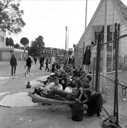 The Rolling Stones holdt 24. juni 1965 en legendarisk konsert i Sjølysthallen i Oslo. Ungdom fra hele landet strømmet til og overnattet i kø for å få billetter. Fotograf ukjent/Dagbladet | Norsk Folkemuseum