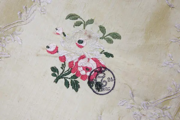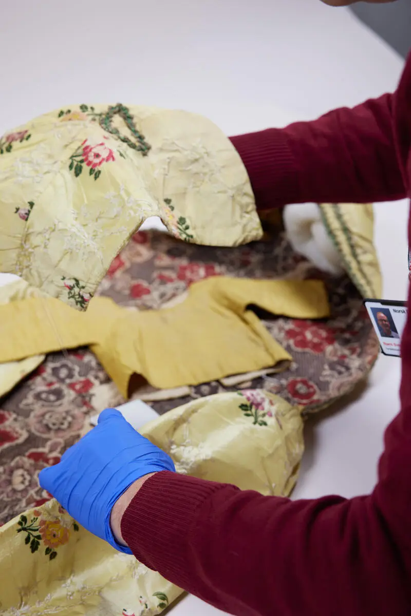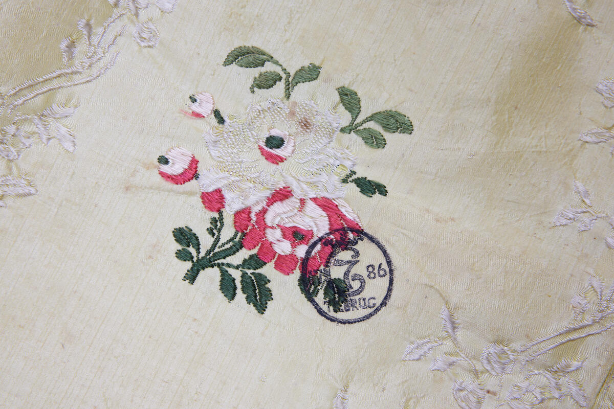 Silkestempelet på Jørgen Moes dåpsdrakt. Christian André Strand | Norsk Folkemuseum