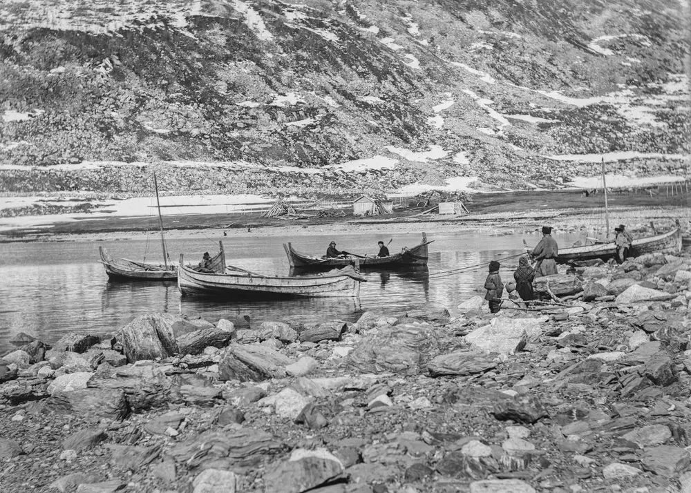 Sjøsamer på fiske i Lerresfjord nord for Alta, 1882. : Sophus Tromholt | Universitetsbiblioteket i Bergen