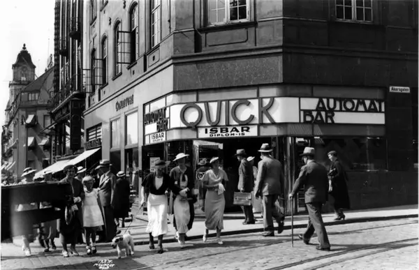 Hjørnet Karl Johans gate og Akersgata, Oslo 1935. H. C. Neupert | Norsk Folkemuseum