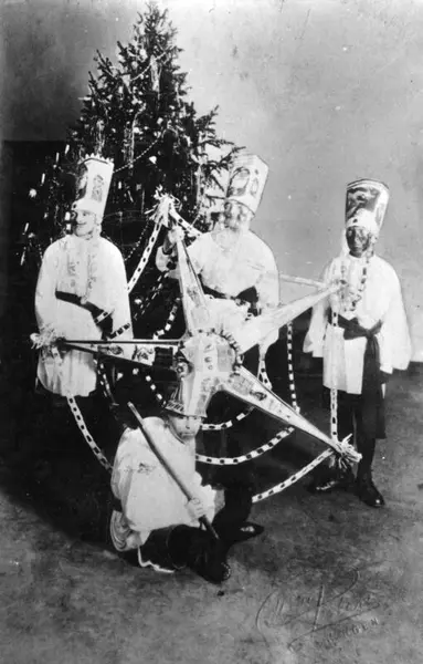 De fleste av oss forbinder i beste fall stjernegutter med Lucia feiringen 13. desember. Det er imidlertid en langt nyere tradisjon, som svenskene skapte/ tok opp igjen så sent som i 1927. Den gang på initiativ av Stockholms-Tidningen. Her hjemme ble Luciaskikken, slik vi hentet den fra Sverige, mer og mer populær fra 1950-tallet og fremover. Foruten en hvitkledt Lucia med en lyskrans på hodet, består opptoget av hvitkledte stjernegutter og terner, som synger Luciasangen. Våre norske stjernegutter sprang derimot ut fra en langt eldre felleseuropeisk tradisjon. Lik julebukken hørte stjerneguttene med blant de folkelige innslagene i norsk julefeiring. Særlig var det mellom jul og helligtrekongersdag 6. januar at man kunne treffe stjerneguttene på deres vandring.