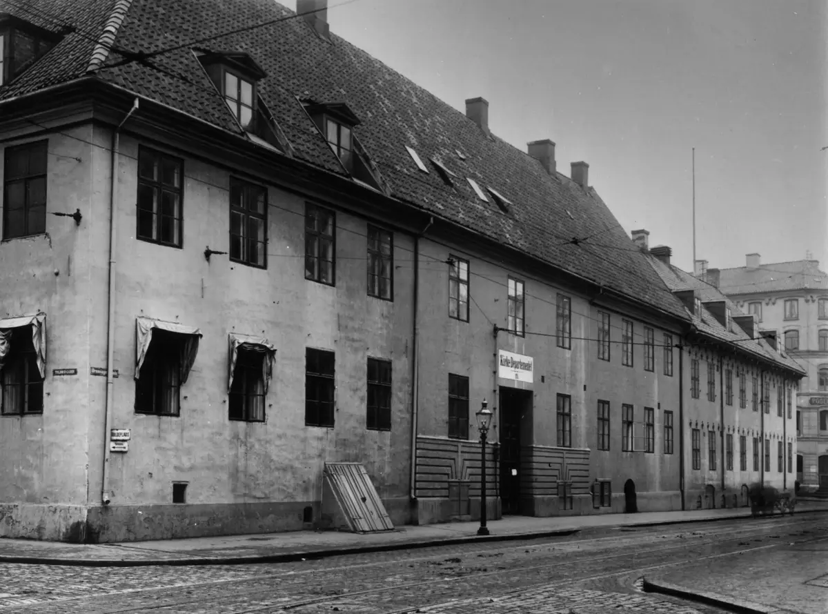 Da Stortinget flyttet ut av Dronningens gate 15 i 1850-årene, overtok Kirkedepartementet gården. Fotografert 1912. Riksantikvaren | Norsk Folkemuseum