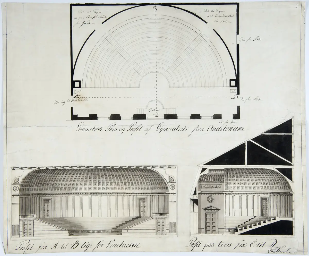 Stanleys utkast til nytt auditorium for Christiania Katedralskole 1799-1800.