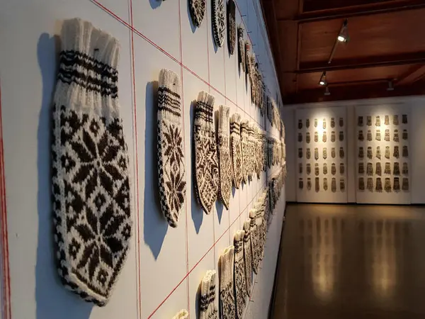 En strikkeutstilling, med over 500 par votter, fokuserer på mønsterskatten i selbustrikkingen.