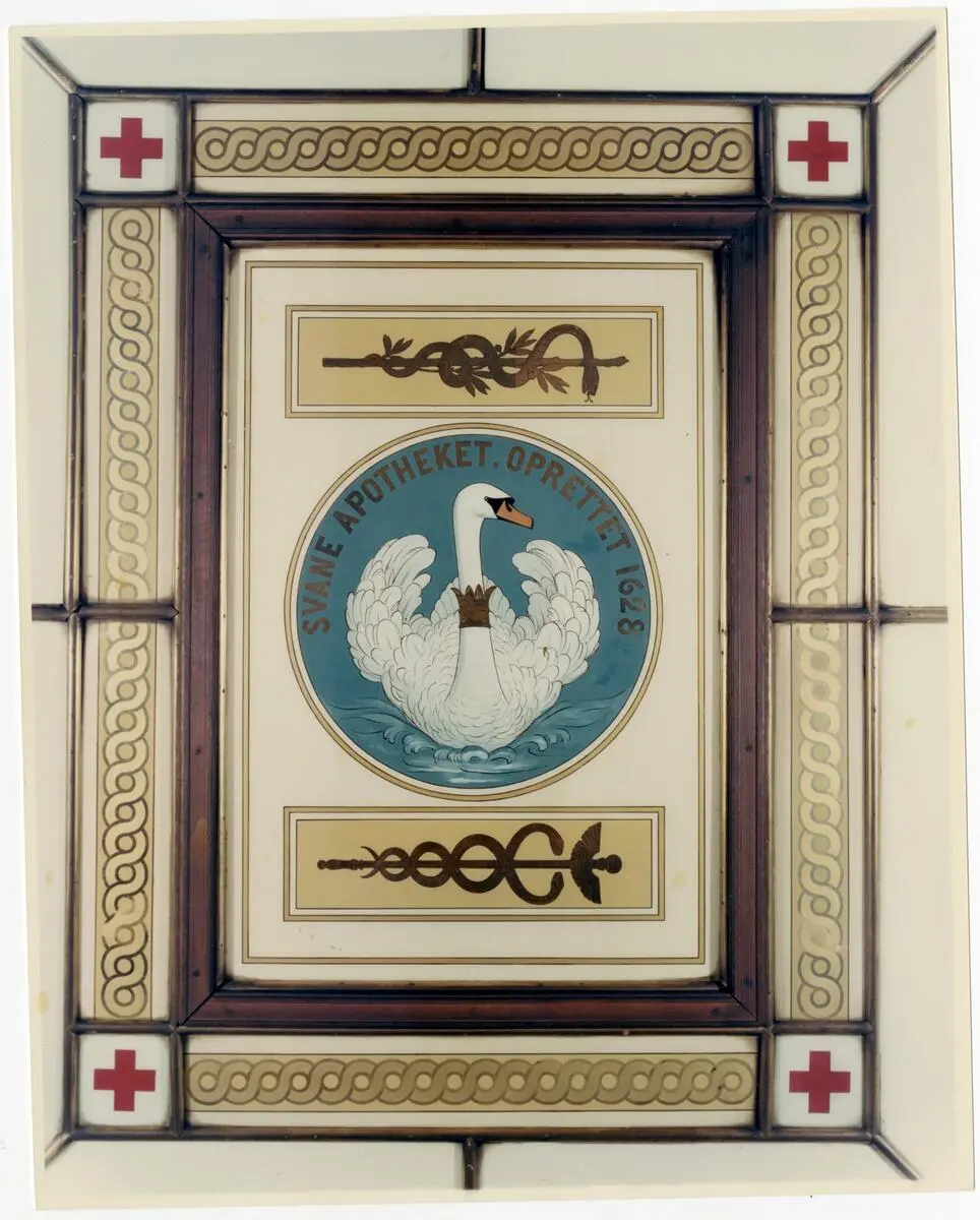 Svaneapotheket i Oslo ble opprettet i 1628. Dagens anlegg er fra 1896. Det er i dag ikke apotekdrift i lokalene. Glasstaket er malt av Wilhelm Krogh. Materialet er glassplater med dekor på innsiden, holdt på plass av trelister. Langs takets ytterkant løper en kant med blomsterornamenter. I feltene på hver side av midtaksen er avbildet legekunstens og farmasiens aner, legeguden Asklepios og hans datter Hygiea, flankert av svanemotiver. De tverrgående feltene viser medisinplanter som valmue, kongslys, revebjelle, piggeple, bulmeurt og belladonna. Takdekorasjonene utgjør til sammen en ikonografisk enhet. Taket er i så måte representativt for det sene 1800-tallets holdning til dekor, synliggjøring gjennom bruk av kjente symboler.