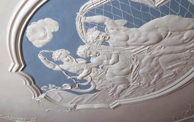 Utsnitt av stukktaket i Generalitetsgårdens 1. etasje. Eva Brænd | Norsk Folkemuseum - 2/2