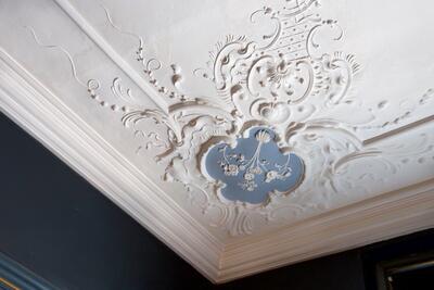 Utsnitt av stukktaket i Generalitetsgårdens 2. etasje. Eva Brænd | Norsk Folkemuseum
