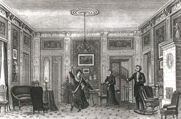 Salongmøblementet, som består av sofa, bord og stoler, er i nyrokkokostil. I rommet er også både piano, etasjere og gyngestol på plass. Ovnen er en «stentøjsovn» – en kakkelovn. Dette var ikke så vanlig i Christianias murgårder som i Ibsens scenebeskrivelser. I Wessels gate 15 har det nok bare vært jernovner, men her er likevel scenebeskrivelsen fulgt.