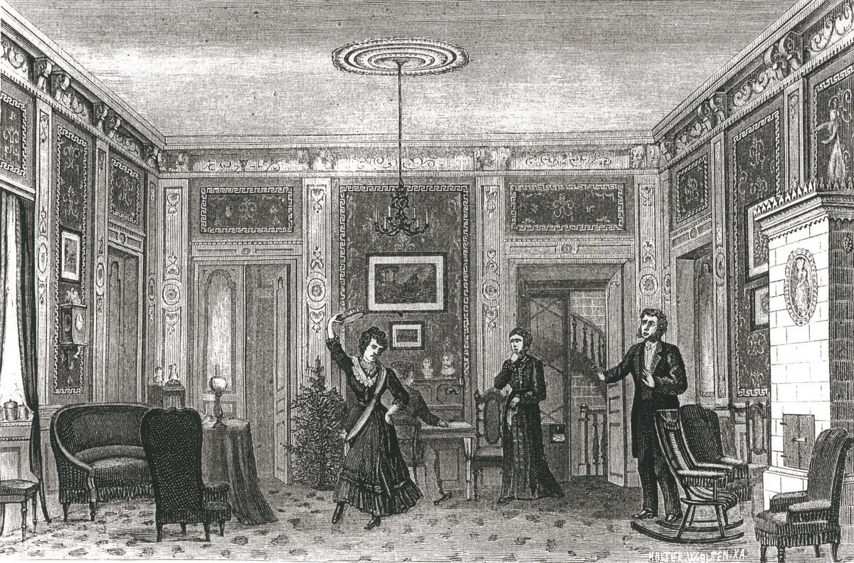 Hos Ibsen vokser Nora seg ut av de snevre rammene. Det er med salongen – i Wessels gate 15 plassert i hjørnestuen – som bakgrunn, og midt i julefeiringen, at Nora Helmer bestemmer seg for å forlate sin mann og sine barn. Denne drastiske beslutningen står i sterk kontrast til det respektable og tilsynelatende hyggelige «dukkehjemmet».